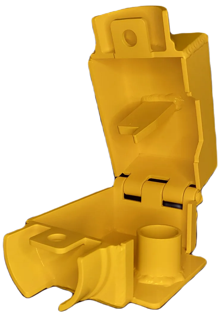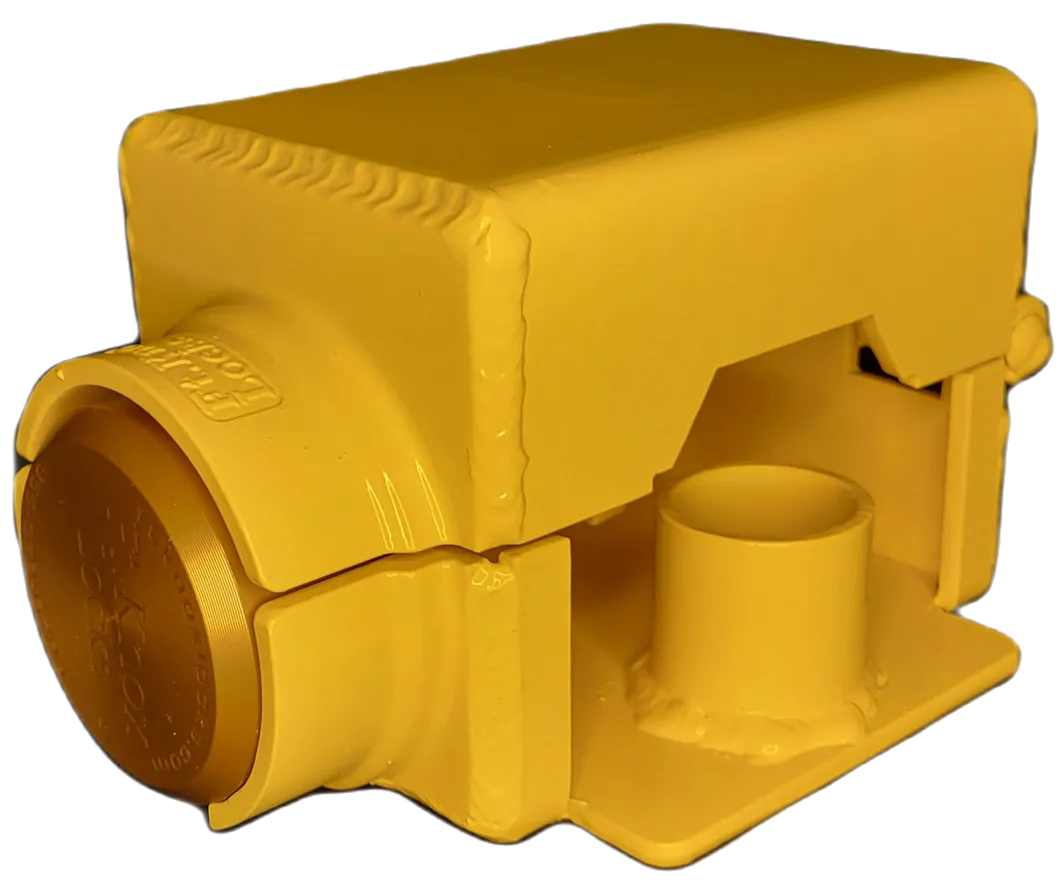 3/16 welded steel construction with a no-nonsense design which fully encompasses the ball head of an Airstream coupler. Accepts most all “puck” style locks (sold separately) which by design are completely bolt cutter proof. Time, noise, power tools or a cutting torch will be required to defeat our lock design which will eliminate most theft interest. Be sure to compare your coupler to the pictures here and DO NOT buy if it does not match. We also sell a few different brands of the “puck” style locks (sold separately) with varying levels of security. DO call us for clarification if you have any questions. Be sure to check out our installation video HERE. We offer discounts starting at 10 or more Ft. Knox Locks. Bright yellow powder coat. Made in America!
