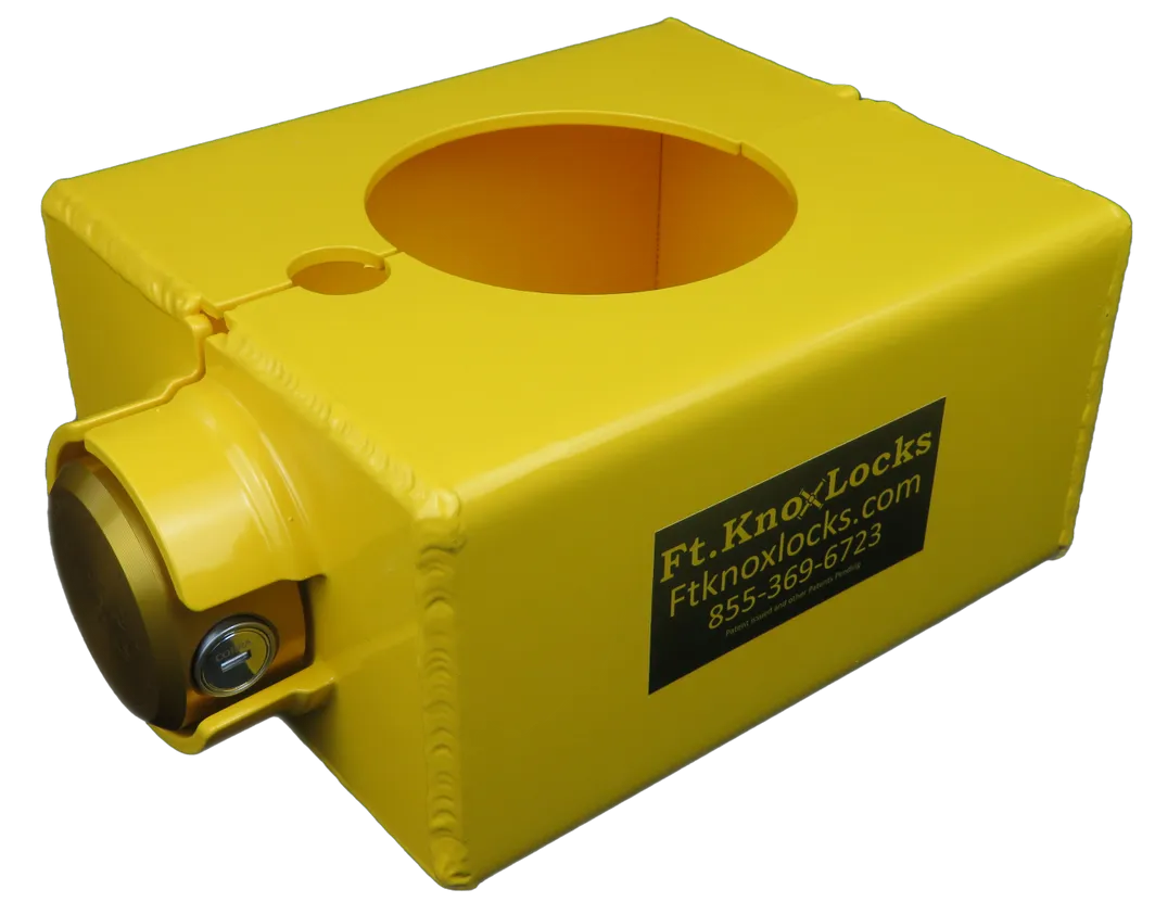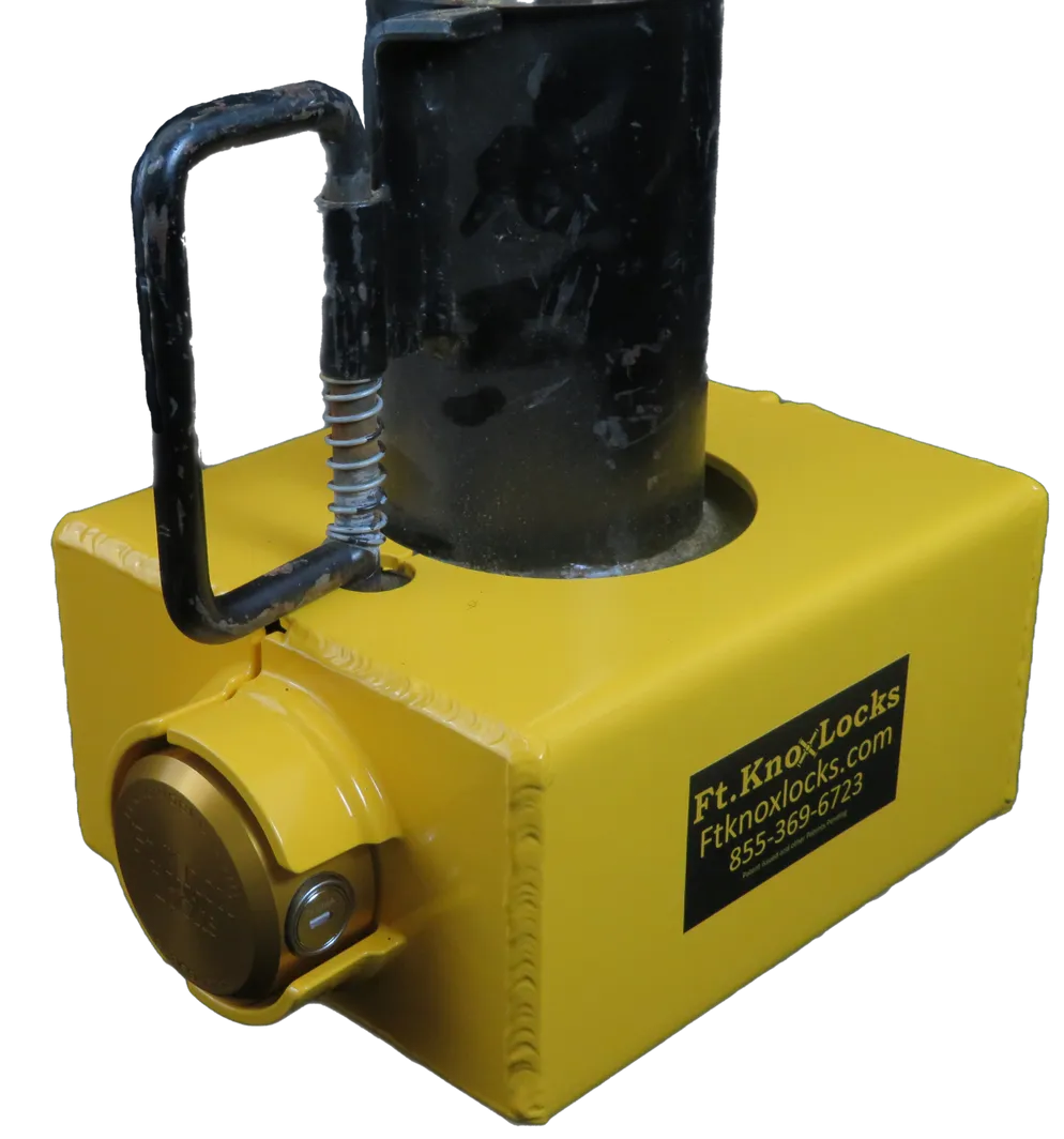 3/16 welded steel construction with a no-nonsense design which fully encompasses the gooseneck coupler latch.  Accepts most “puck” style locks (sold separately) which by design are completely bolt cutter proof.  Fits the most common versions of gooseneck couplers including the Bulldog BX1 as well as square tube versions.  Time, noise, power tools or a cutting torch will be required to defeat our lock design which will eliminate most theft interest. We also sell a few different brands of the “puck” style locks (sold separately) with varying levels of security. DO call us for clarification if you have any questions. Be sure to check out the installation video HERE. We offer discounts starting at 10 or more Ft. Knox Locks. This version also fits many of the offset and Shocker models of gooseneck couplers.  DO call us for clarification if you have any questions.  NOTE:  If you own the Bulldog cable lever (also sold under other names) DO NOT BUY this model – we have a model specifically designed for that application – see “Bulldog cable lever gooseneck lock”.  Consider out Gooseneck latch & set bolt combination deal with keyed alike locks & free shipping!  Made in America!