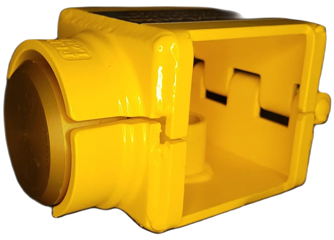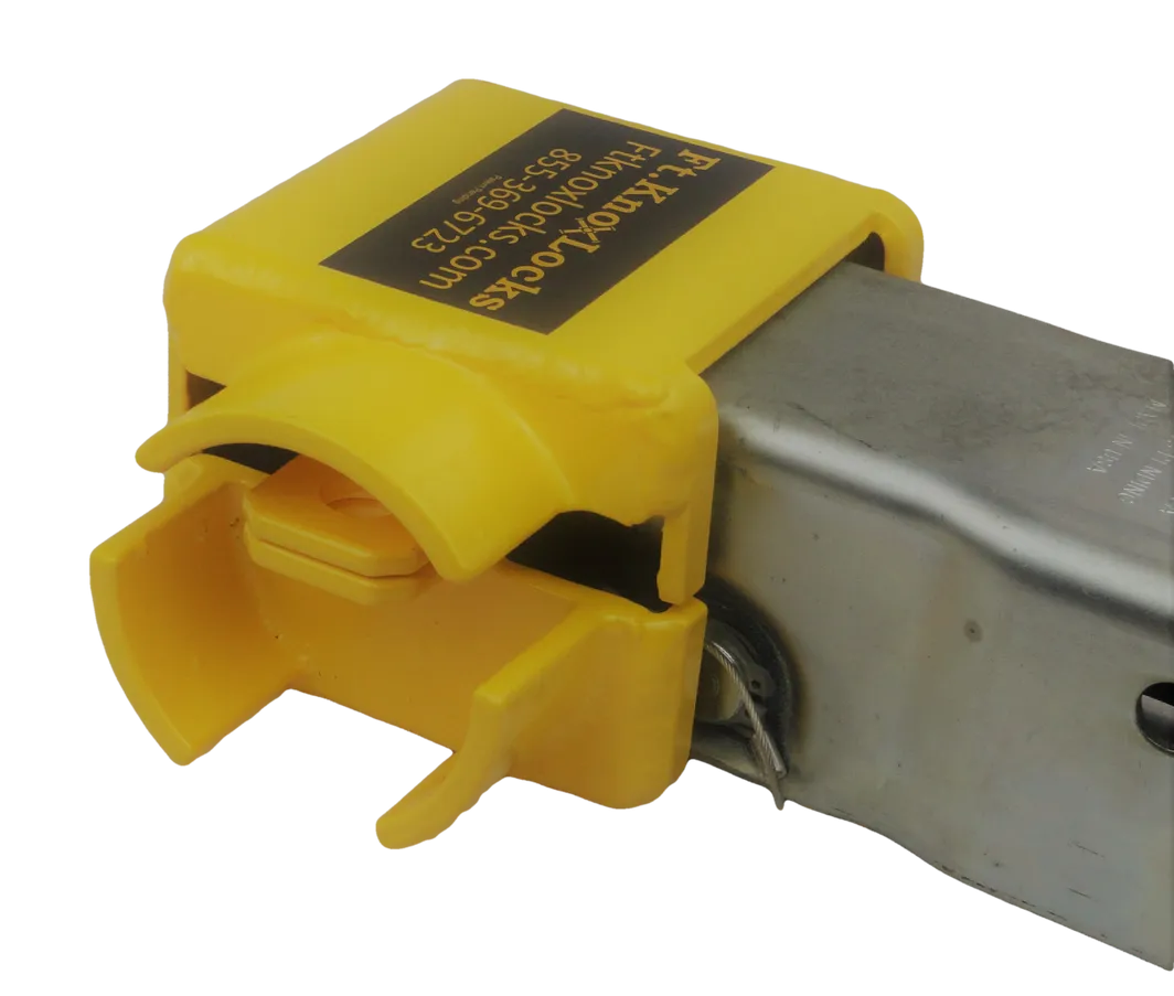 3/16 welded steel construction with a no-nonsense design which fully encompasses the ball head of an UFP coupler. Accepts most all “puck” style locks (sold separately) which by design are completely bolt cutter proof. Time, noise, power tools or a cutting torch will be required to defeat our lock design which will eliminate most theft interest. Be sure to compare your coupler to the pictures here and contact us first if it does not match. We also sell a few different brands of the “puck” style locks (sold separately) with varying levels of security. DO call us for clarification if you have any questions. Be sure to check out our installation video HERE.We offer discounts starting at 10 or more Ft. Knox Locks. Bright yellow powder coat. Made in America!